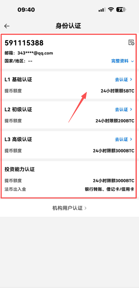 | 基础认证 | 身份证 | 提升账户限额,解锁基本交易功能 |