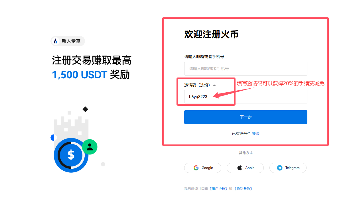 邀请码:b6yq8223;邀请码必须填写,邀请码可以减少20%的手续费,包含现货合约的手续费都可以减免20%!