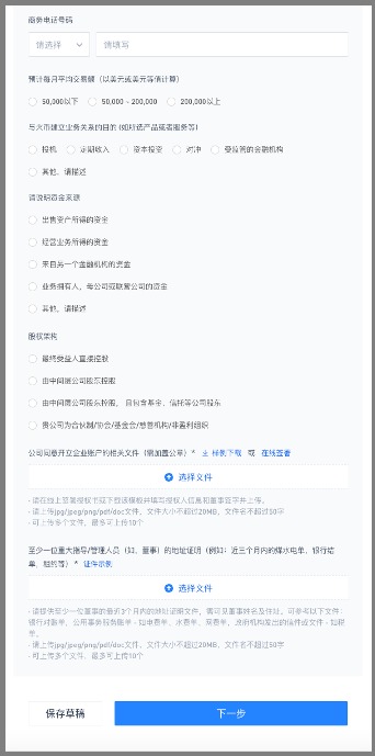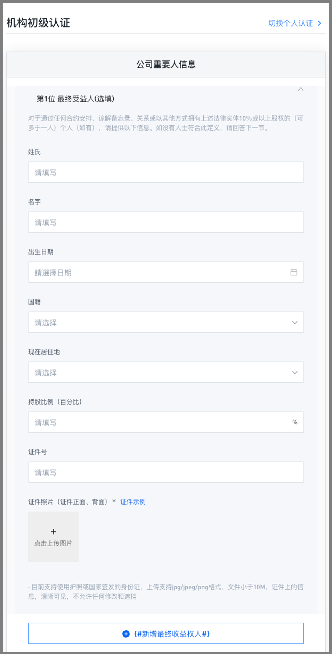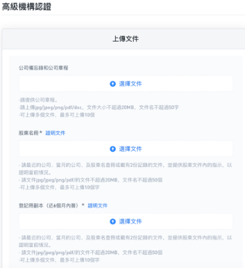 1)进入LV1机构初级认证,根据指引填写公司信息并上传相关文件: