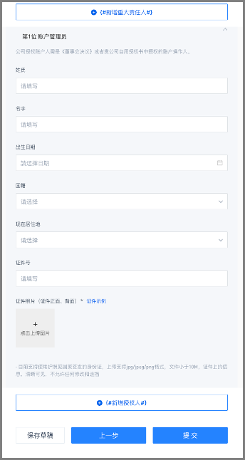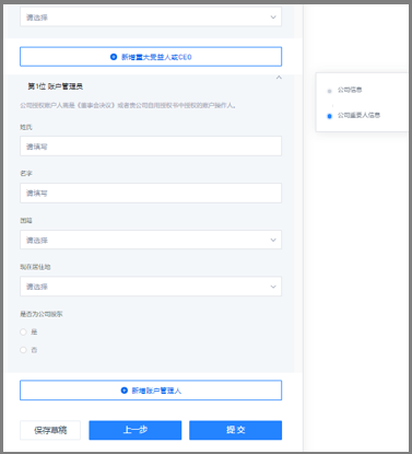 d. 填写公司重要人员资讯并上传文件(证件照)