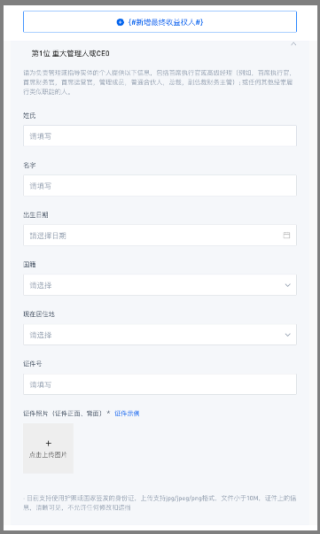c. 帐户授权人,董事或者负责管理、领导公司的个人,以及持股占比10%的最终受益人的身份证明档案(护照或者国家颁发的身份证明档案等,有效期须在12个月以上)