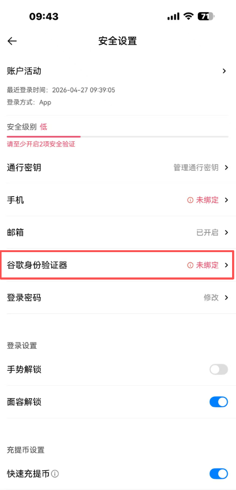 绑定谷歌身份验证器