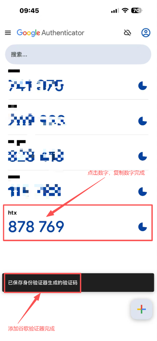 6.点击数字复制六位密钥,