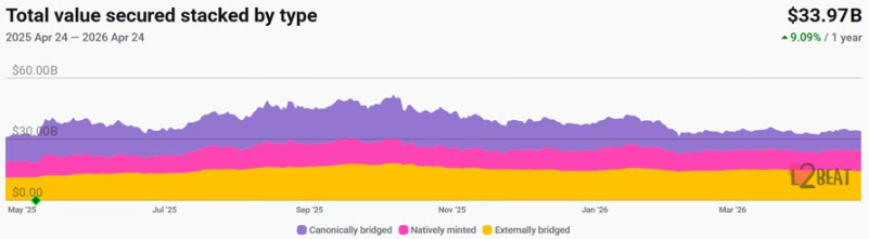 4月24日,Rollups已锁定价值近340亿美元的资产。来源:L2Beat