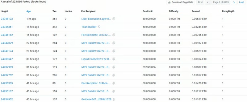 以太坊每天的重组次数通常少于10次。来源:Etherscan