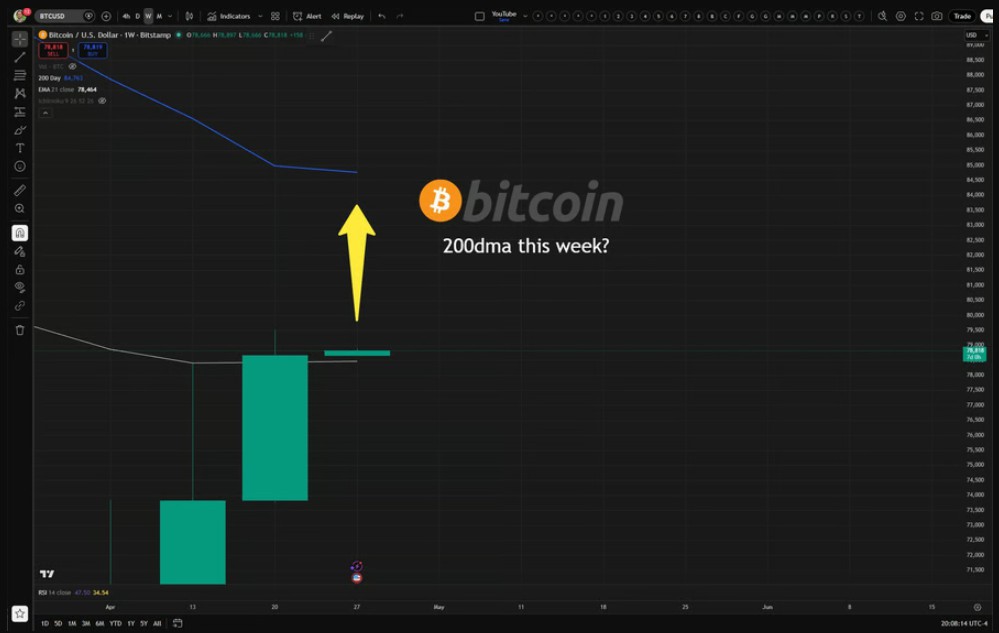 “8.45万美元(200日均线)似乎是本周的下一个目标。”
