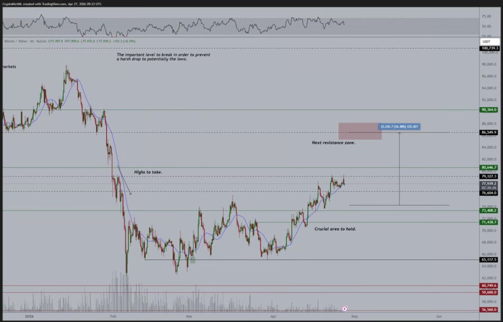 BTC/USDT六小时图。来源:米夏埃尔·范德波普/X
