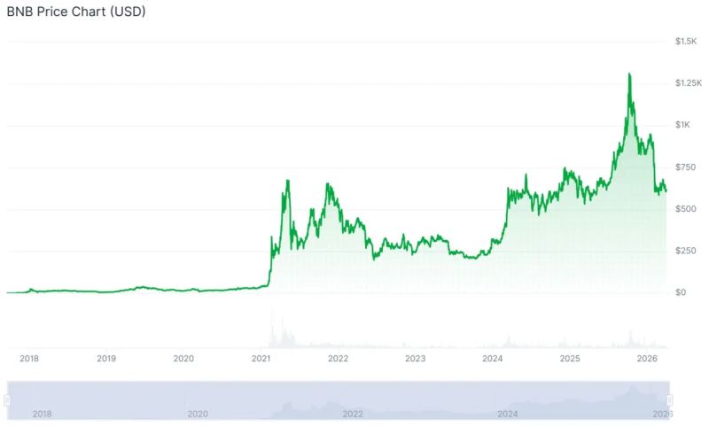 - 2026年初, BNB 价格接近870美元。然而,3月初,其价格下跌至620美元附近。