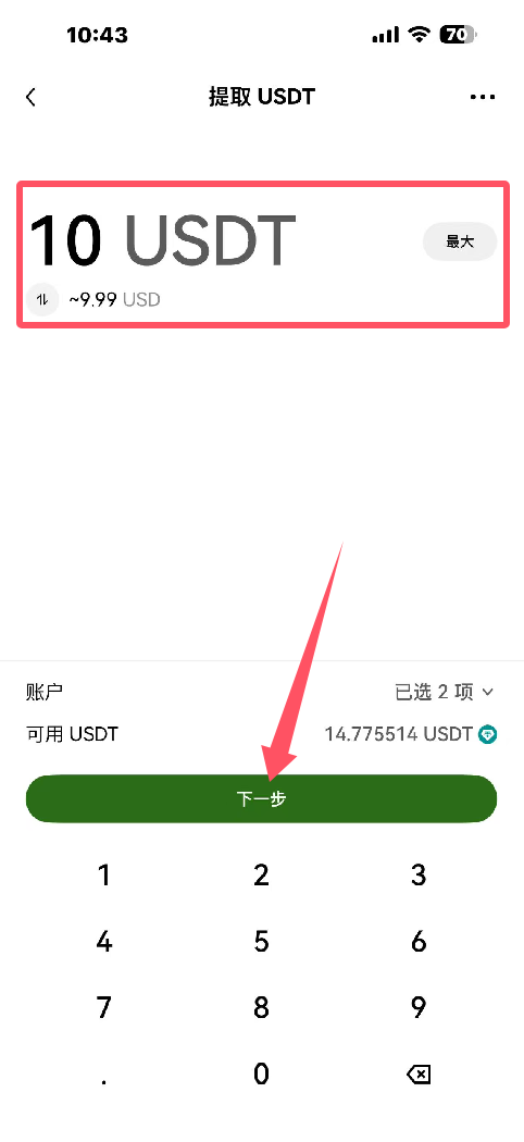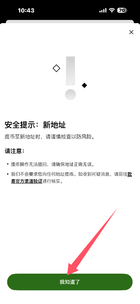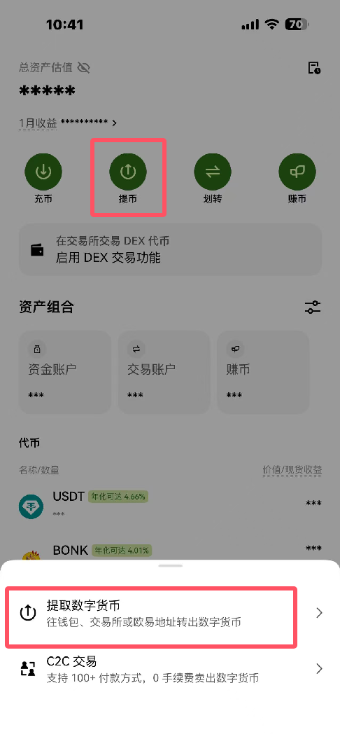 第二步:欧易APP提币