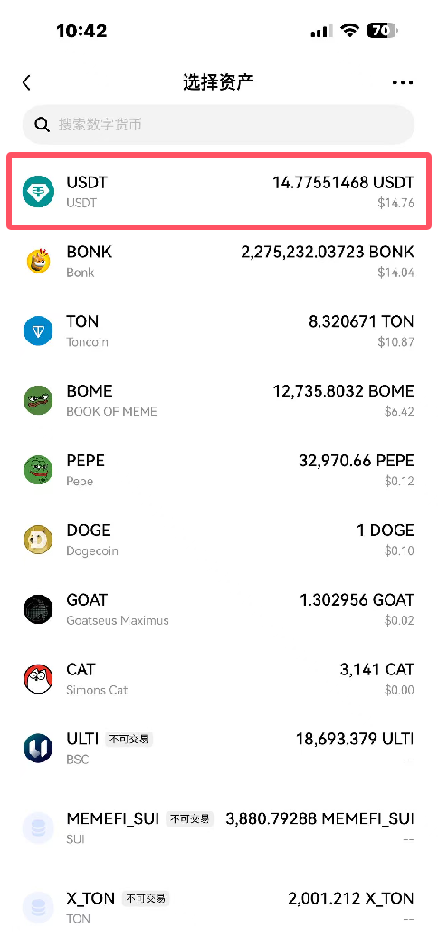 - 币种必须一致:充USDT就提USDT