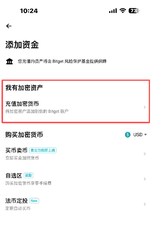 14.选择充值加密货币,如图