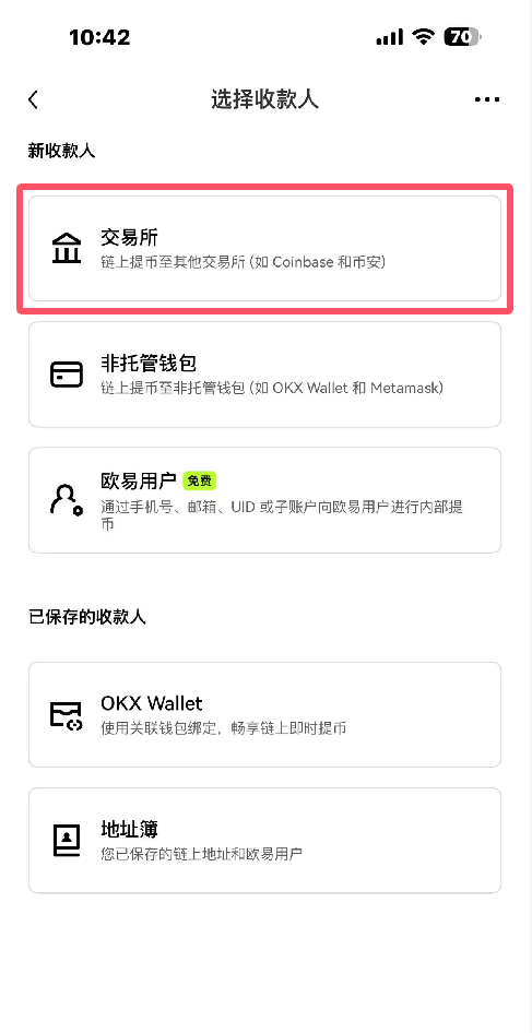 20.在选择收款人选择交易所,如图