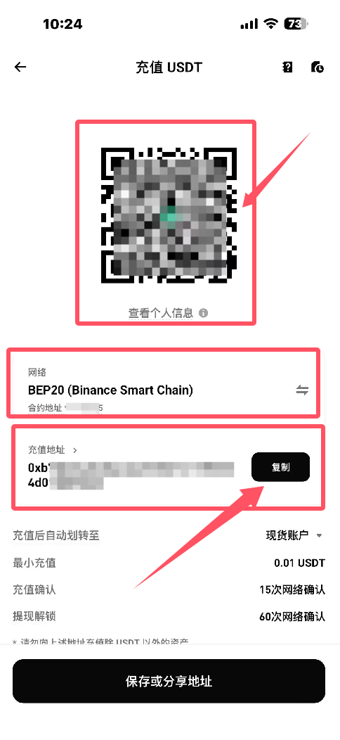 17.复制充值地址,或者扫描二维码,如图