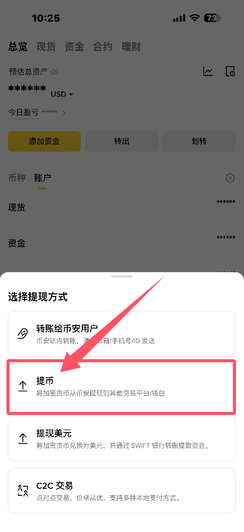 第二步:币安APP提币