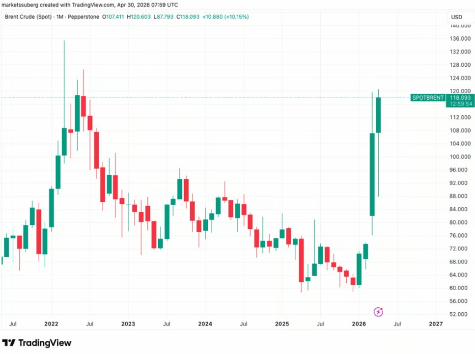 比特币(BTC)未能重新站稳新支撑位,而原油价格则创下近四年来的最高水平。