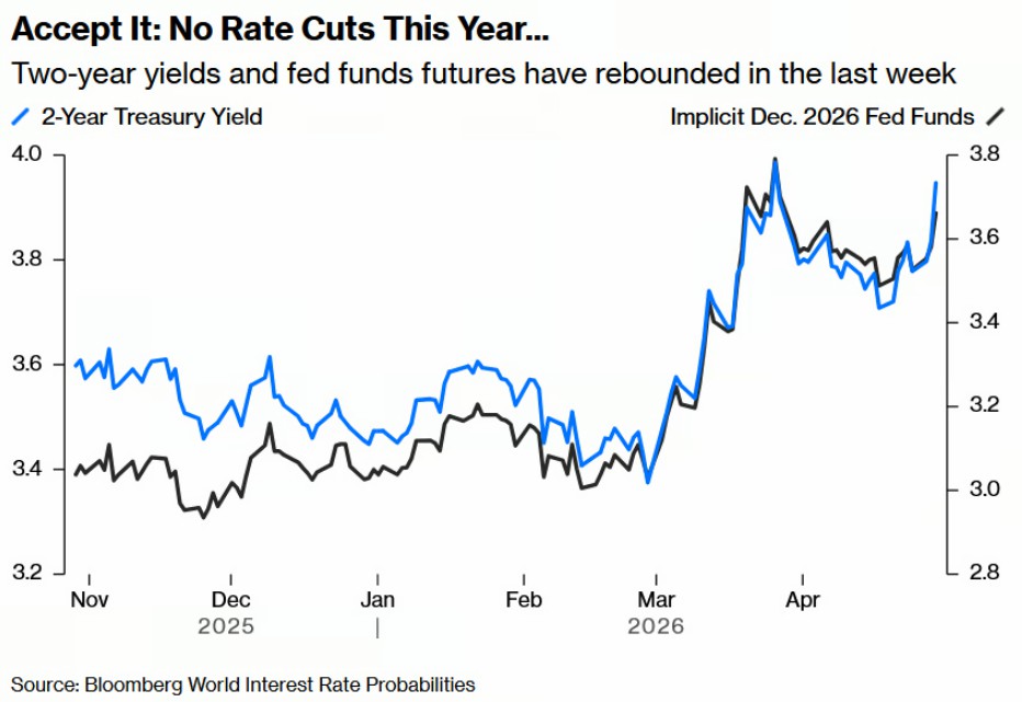 美国两年期国债收益率与美联储基金利率期货。来源:尼克·帕克林/X