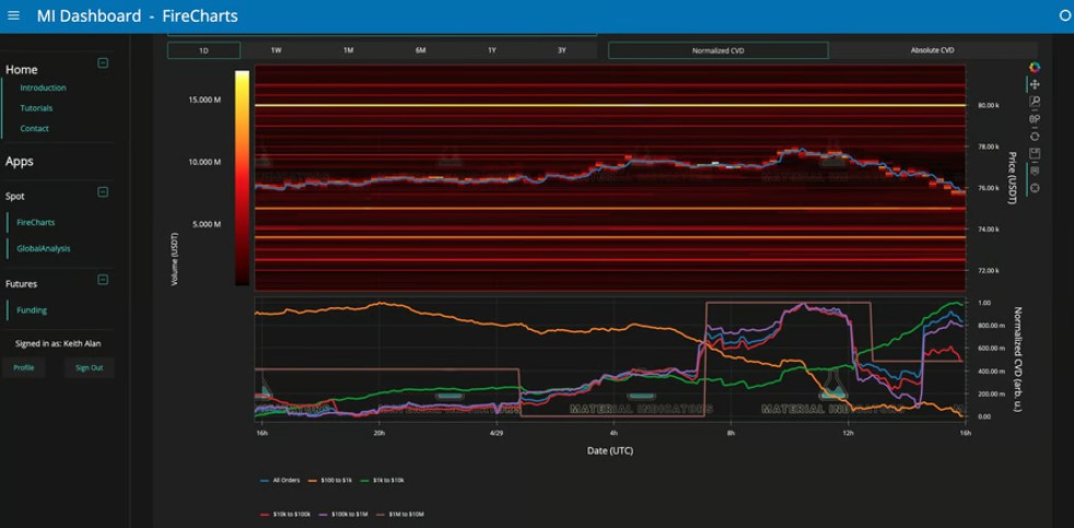 币安BTC/USDT订单簿数据(含巨鲸订单)。来源:Material Indicators/X