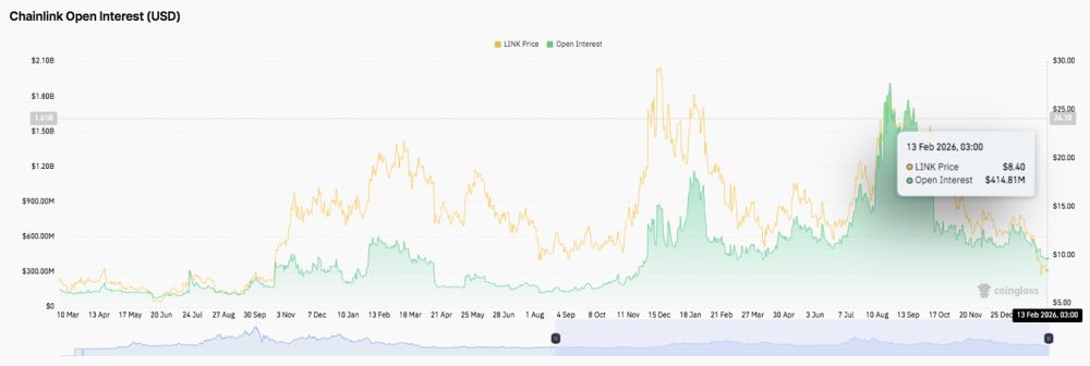 Chainlink价格预测:LINK未平仓合约量回落,交易者缓慢重建仓位 2026.1.22