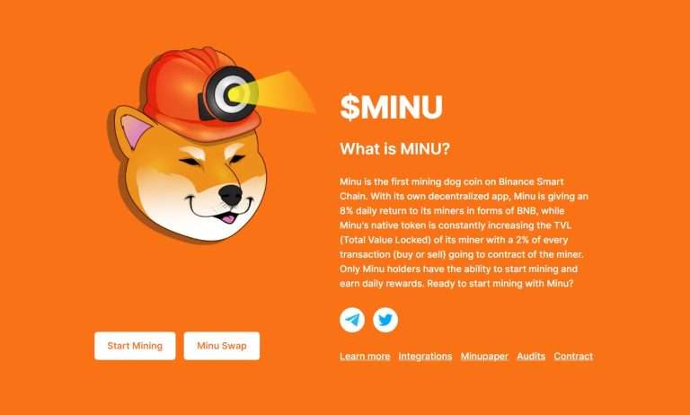 根据官网介绍,Minu 是币安智能链上的第一个矿狗币。