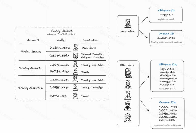 - 用户:GRVT支持个人和企业用户。个人账户仅允许一个用户访问所有关联交易账户,而企业账户则可以设置多个用户,并根据不同权限访问资金账户和/或交易账户。