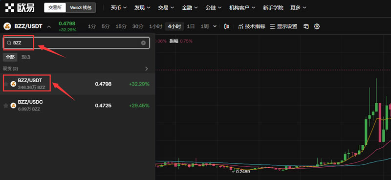 购买BZZ币可以在其上线的欧易、币安、火币等等34家交易所内进行,下文是在欧易交易所购买BZZ币的具体教程: