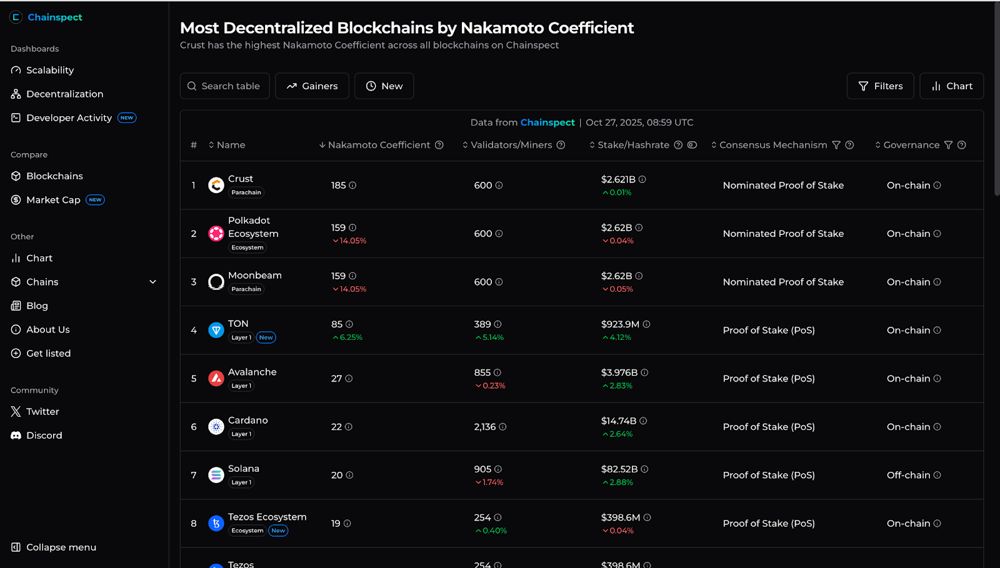 - Cardano 在去中心化方面排名第六,拥有 2,100 名验证者和 147 亿美元的股份,增强了其长期韧性。