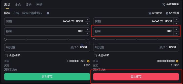 7、填写卖出数量,点击【卖出BTC】,完成BTC置换成USDT步骤