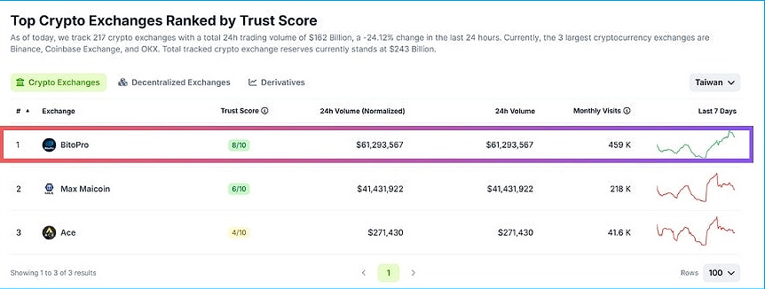 币托交易所是一家安全的虚拟货币交易所,目前在Coingecko的加密货币中心化Trust Score 世界排名前50、台湾交易所中排名第一。