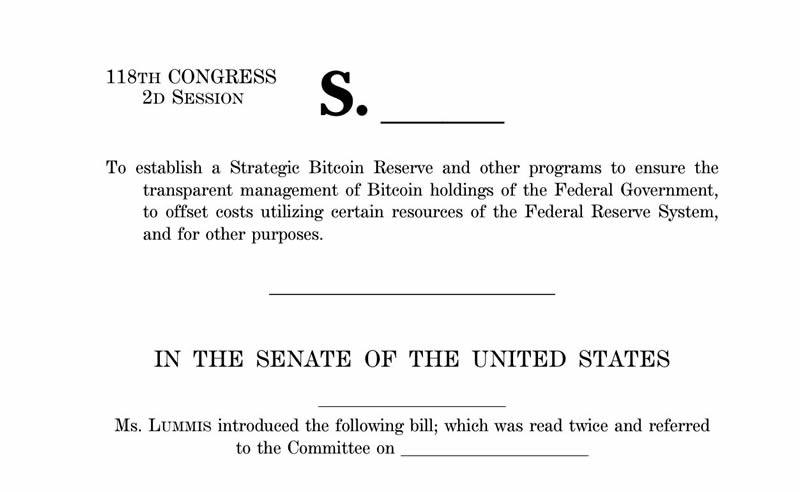参议员辛西娅·卢米斯 (Cynthia Lummis) 于 2024 年提出了 战略比特币储备立法。