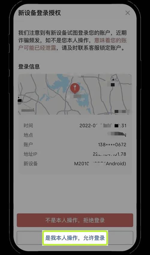 为了您的账户安全,使用新设备登录账户时,需要账户绑定的证件本人进行人脸识别验证,请您本人在手机上按照指示眨眼或点头示意,进行身份比对时请您保持脸部完整,请勿遮挡摄像头,在光线充足处进行验证。