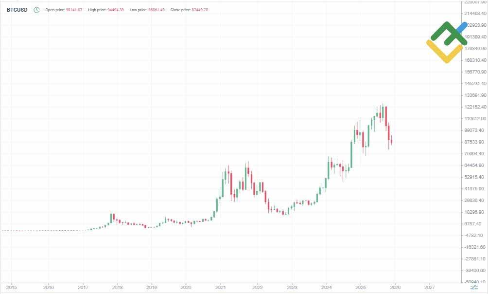 - 2025年。比特币创下历史新高,突破12万美元大关。此后,价格开始回调。到 11 月下旬,比特币价格跌至 85,000 美元。