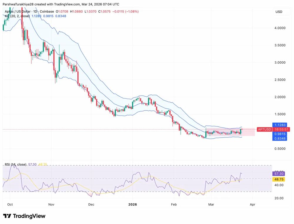 Aptos 对 2026 年的价格预测表明,平均价格可能在低端的 $0.373055 和高端的 $1.13 之间。相比于今天的平均价格,在加密市场中,如果 APT 达到预测的目标价格,Aptos 可能在 2026 年之前增长 9.16%。