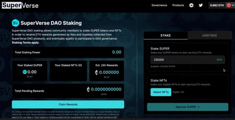 除了治理,SUPER 还是生态系统奖励的基础。用户将其代币质押到指定池中,可定期获得分发奖励,通常以 ETH 或其他游戏内奖励的形式发放。质押机制通过在如 Impostors 等集成游戏中解锁专属装饰物品和福利来增强用户参与度。