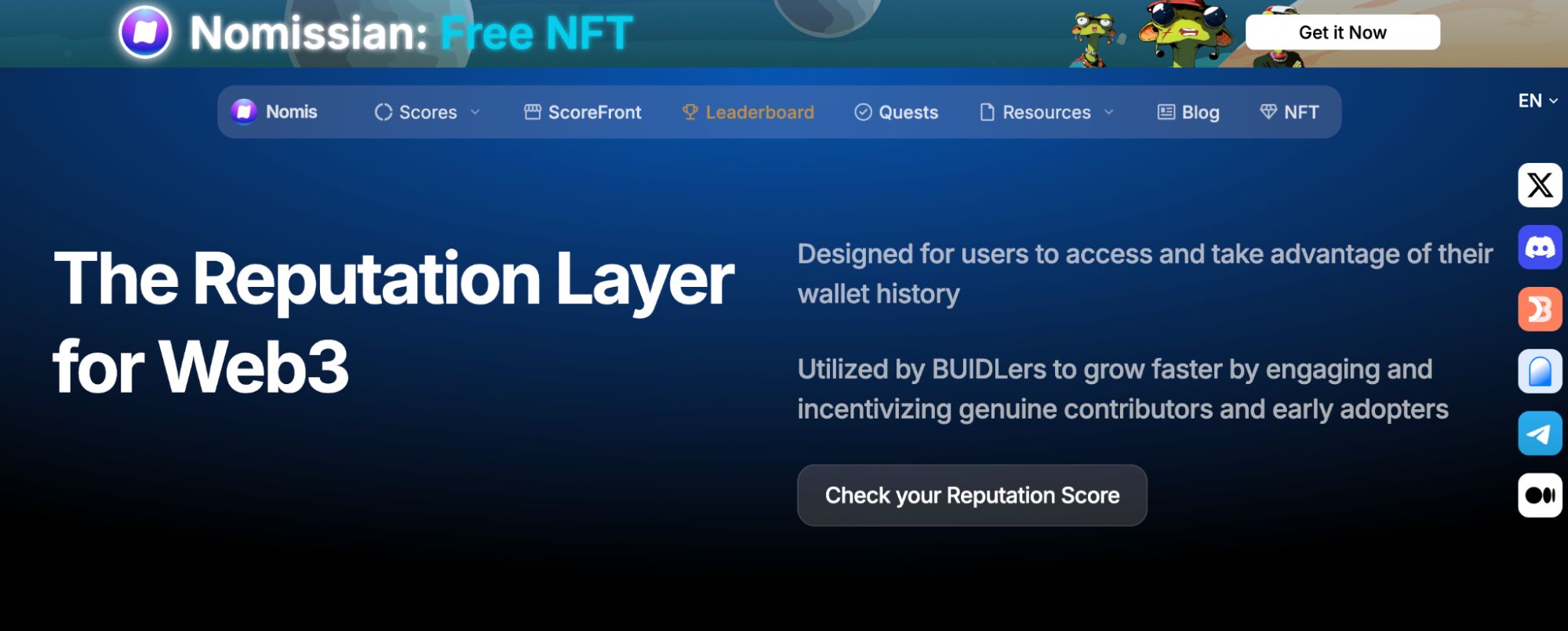 愿景:Nomis 旨在成为 Web3 身份和信誉的基础设施,连接用户与项目,优化去中心化生态的效率。
