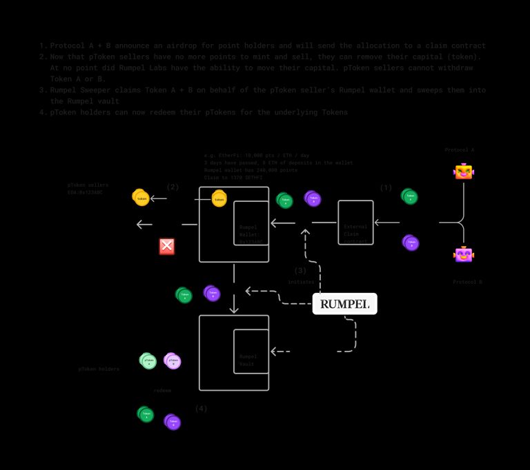 Rumpel 具有代币销毁系统,允许用户销毁并兑换其 pTokens 以获取底层代币。当协议宣布为积分持有者进行空投并将分配发送至领取合约时,pToken 出售方由于无法再铸造和出售积分,因此可以提取其资金。