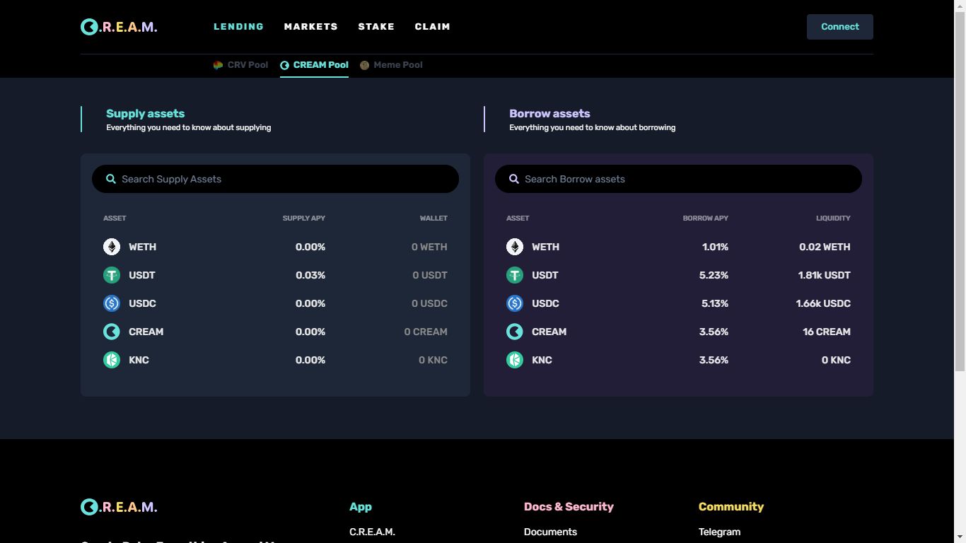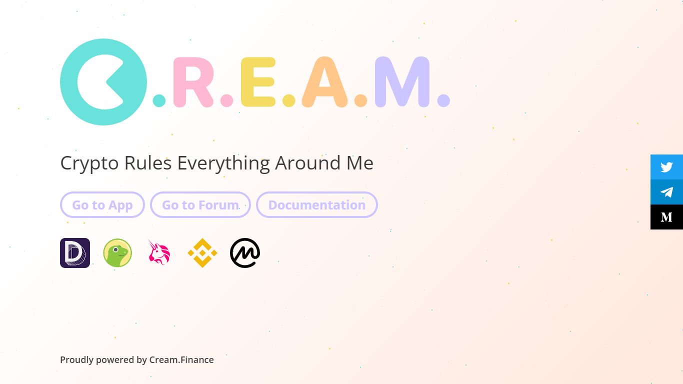 Cream Finance 是“Crypto Rules Everything Around Me”的缩写,是一个多功能的借贷和交易协议,基于 Compound FInance 和 Balancer Labs 开发。该平台建立在以太坊网络上,通过应用来自成功项目的特性并加以改进,向所有用户提供借贷和交易服务,以创造一个更优质的平台。