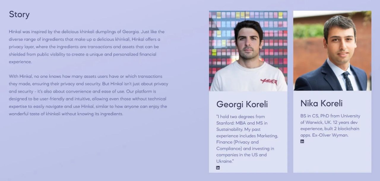 Hinkal Protocol 由一支经验丰富的专业团队领导,致力于提升去中心化金融(DeFi)中的隐私保护。该项目由 Georgi Koreli 和 Nika Koreli 共同创立,Adam Zasada 担任生态系统负责人。