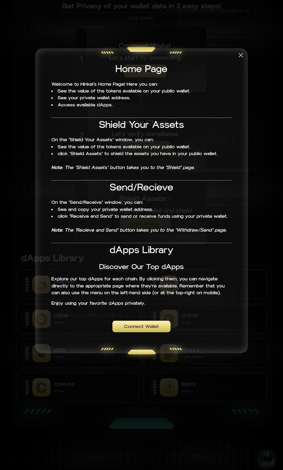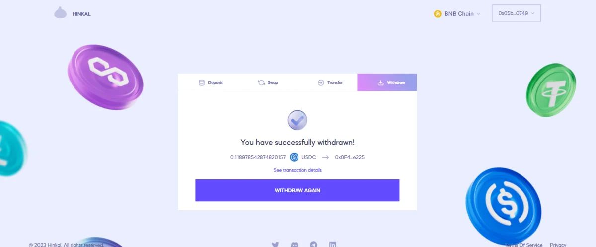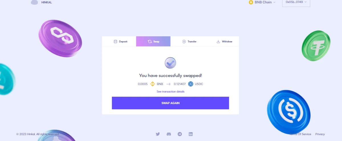 通过这些步骤,您可以存储资产、执行交易并与 DeFi 平台互动,同时保持您的金融活动私密。Hinkal 确保顺畅的体验,让您能够安全、匿名地管理您的数字资产。