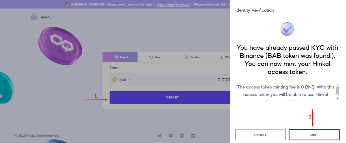 上面选择 1币安的KYC。KYC完成后就可以交互币安链。