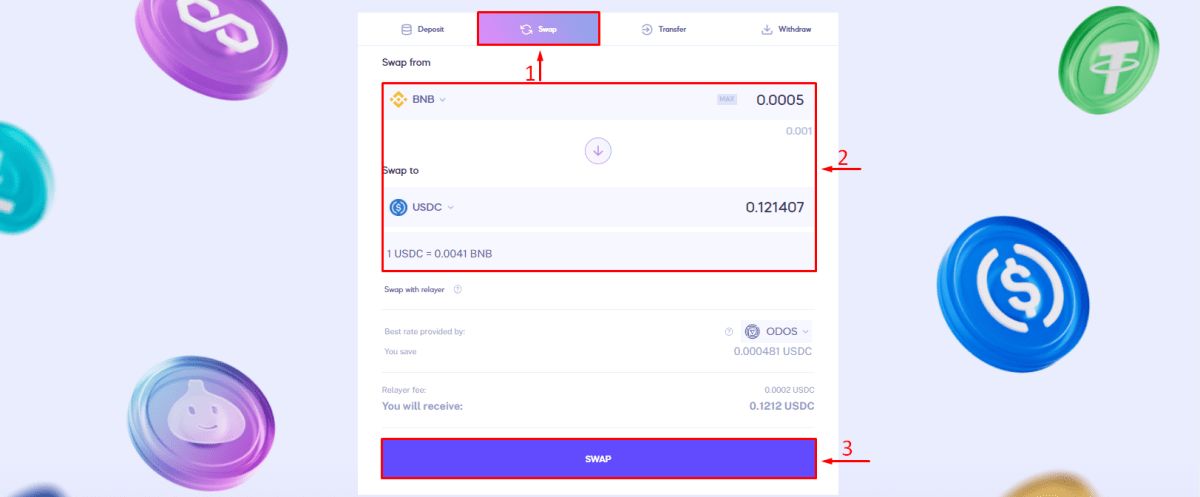 - Uniswap、1inch 和 ODOS 用于代币交换。