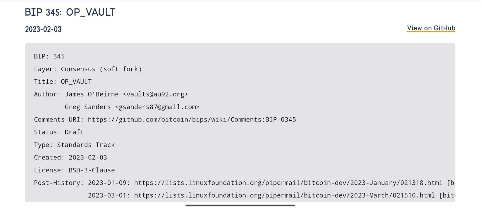 目前,OP_VAULT 仍处于提案阶段,没有官方的发布日期。比特币的开发流程较为保守,所有变更都需要经过严格的测试、同行评审和社区共识。