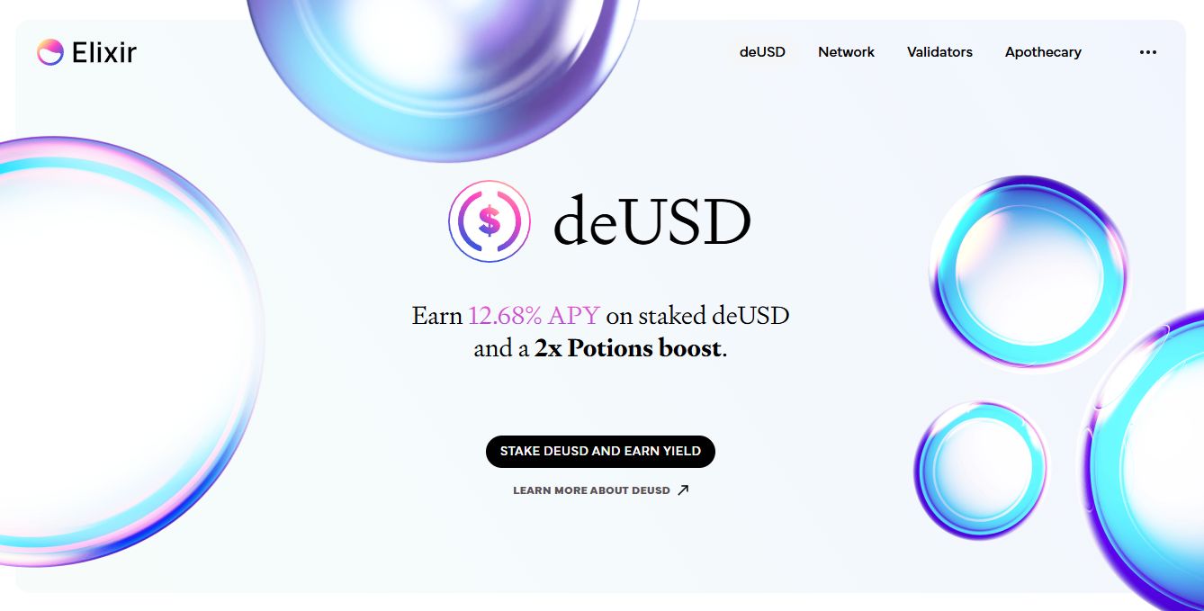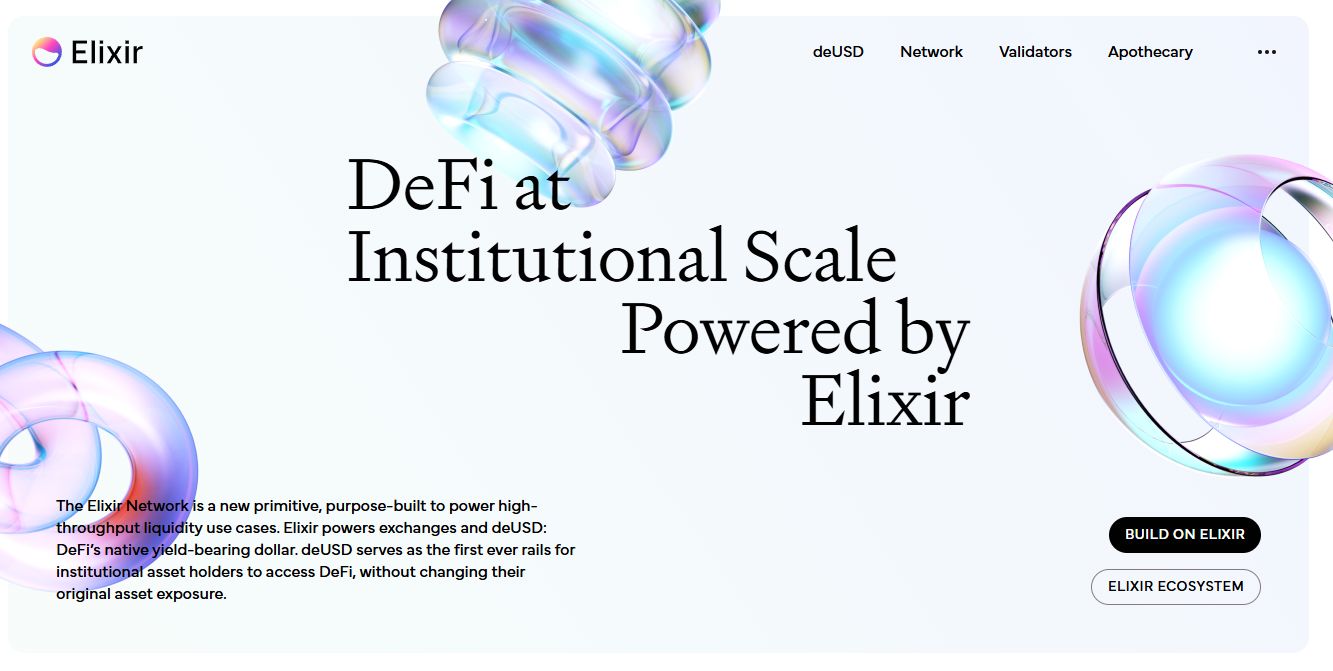 Elixir Network 是一个基于区块链的系统,致力于增强去中心化交易所(DEX)的流动性。用户可以通过参与做市获得收益。作为一个创新的基础设施,Elixir Network 专门设计用于支持高吞吐量的流动性应用场景。它为交易所提供支持,并推出了 deUSD(DeFi 生态中原生的收益型美元)。通过 deUSD,机构资产持有者可以首次在保持原有资产敞口的同时参与 DeFi 活动。