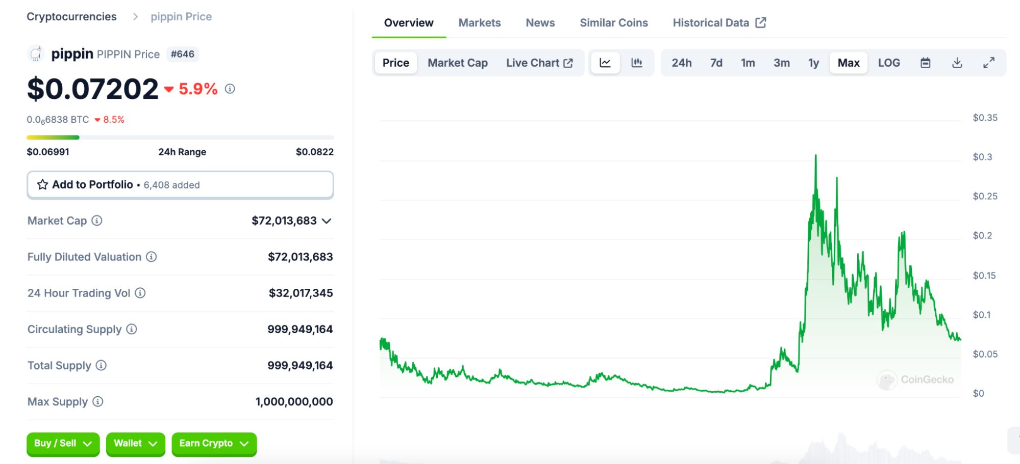 来源:https://www.rootdata.com/Projects/detail/pippin?k=MTU3MjU%3D