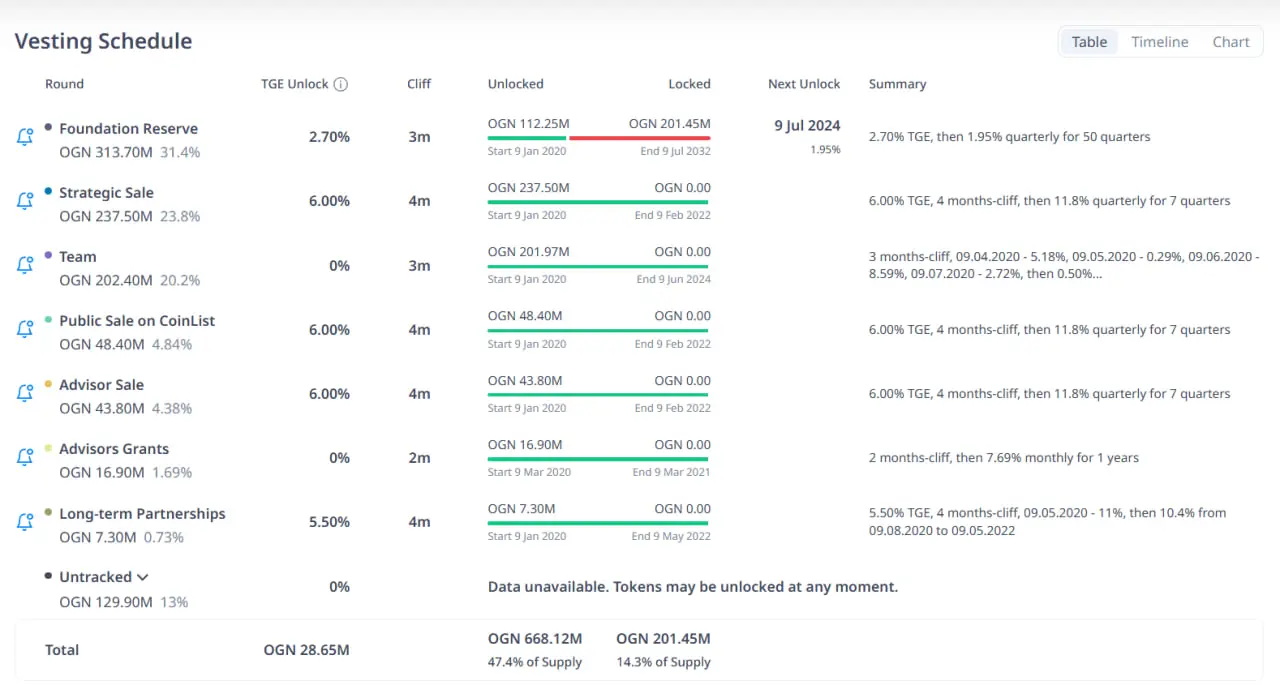 OGN 代币解锁计划