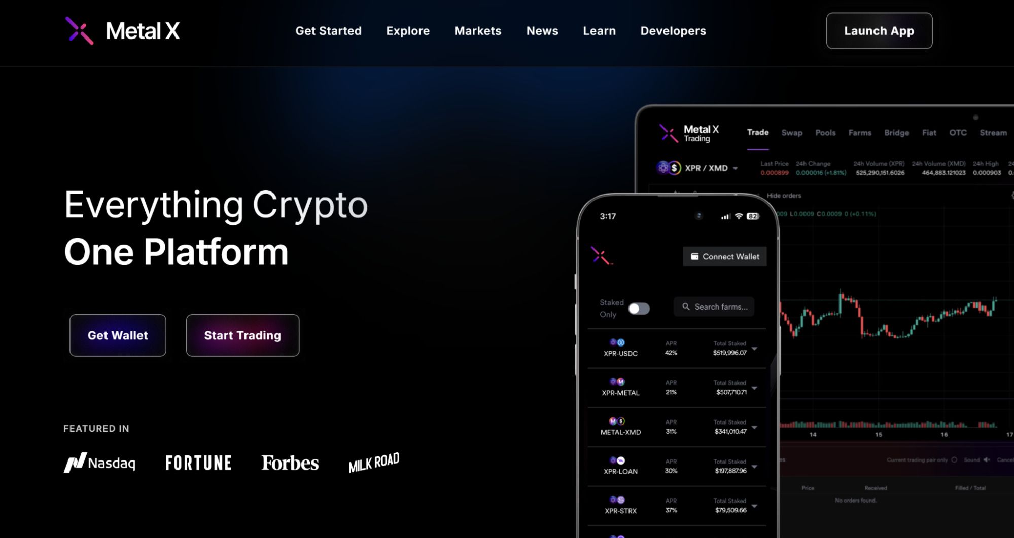 Metal X 是一个运行在 XPR 网络上的先进去中心化交易所,为用户提供无 Gas 费用的交易、借贷和收益机会。该平台集成了十种强大工具,其中包括即时资产兑换、抵押借贷和流动性挖矿,让去中心化金融变得简单易用。用户可以享受透明的链上交易、Metal Pay 合规的法币入口,以及无锁定期的收益奖励。Metal X 将合规性、速度和用户友好性作为内核优势,让用户能在这个去中心化且可扩展的生态系统中安全高效地交易精选资产。