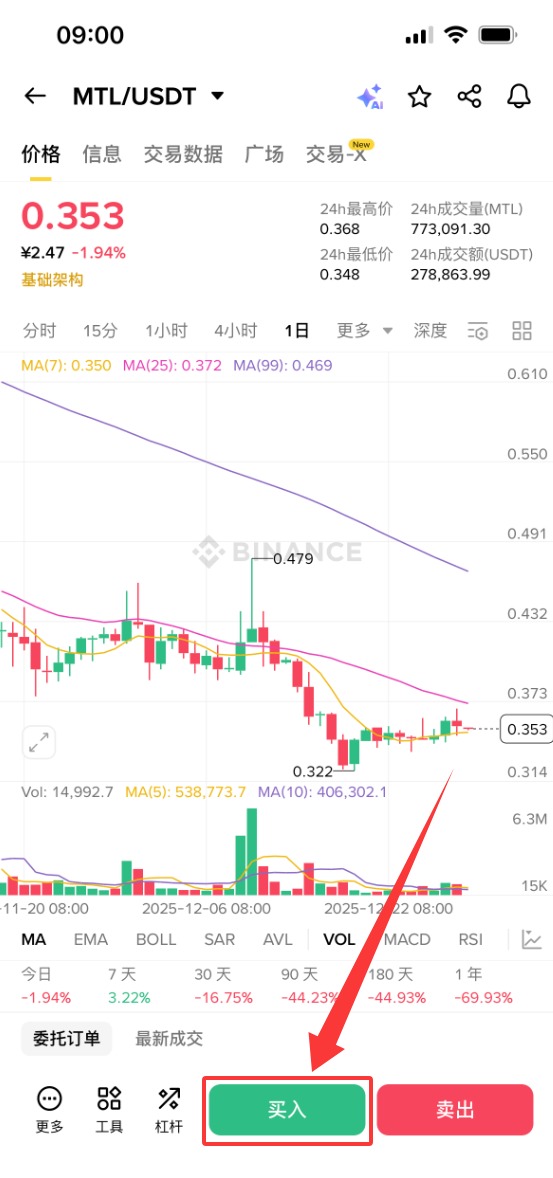 下面以币安为例,为大家演示MTL币购买步骤教程。