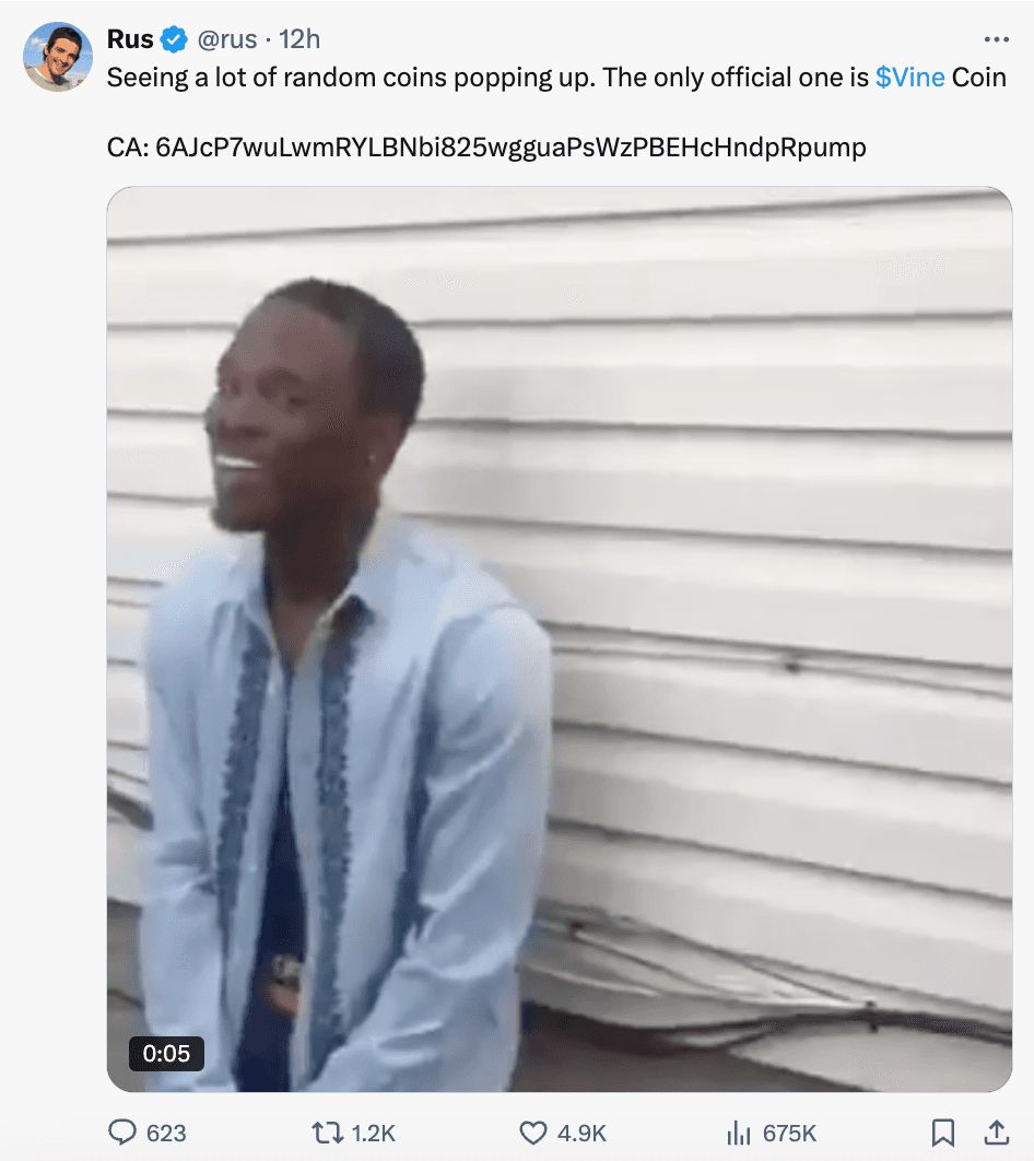在当前市场环境下,Meme 币的资金容量已经超越了以往。尽管关于 Vine 的 Meme 币过去曾多次被炒作,但这次 Vine 联合创始人发币仍然能引起市场关注。无论 Rus Yusupov 发行币的行为是为了赚钱,还是为 Vine 平台发声,在这个美国总统亲自发行 meme 币的加密货币世界里,似乎也并不算特别。