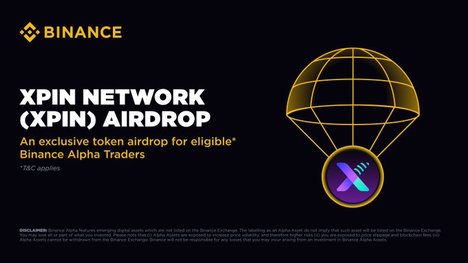 交易开始后,持有至少 200 个币安 Alpha 积分的用户可申领 80,000 个 XPIN 代币空投。先到先得。若活动未结束,则分数门槛将每小时自动降低 15 分。
