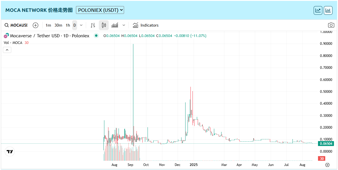Moca Coin(MOCA)今日价格是 $0.07095 ,24h交易额是$1.27M ,Moca Coin(MOCA)的市值为$90.28M,市场占有率为0.015%。Moca Coin (MOCA)价格在过去 24 小时内变动为+0.99%。