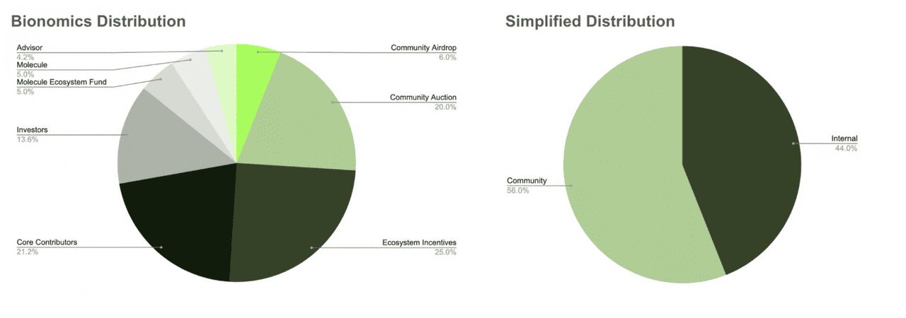 BIO 的初始供应量为33.2 亿枚代币,透过社群拍卖、空投、生态系奖励、贡献者和支持者进行分发,并设有归属时间表以确保逐步释出。 BIO 不仅仅是一种代币,它还能协调整个生态系统的奖励,并推动Bio Protocol 实现社群拥有的科学去中心化网路的愿景。